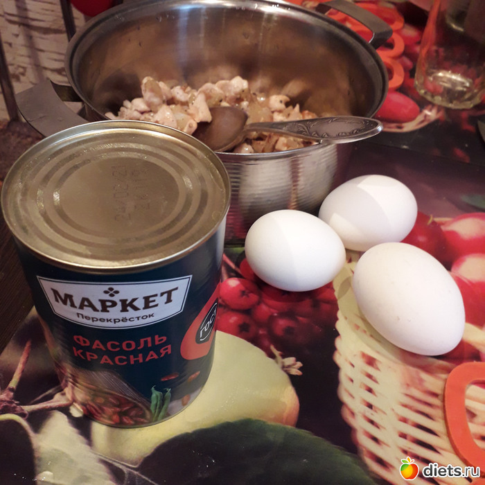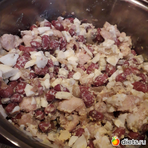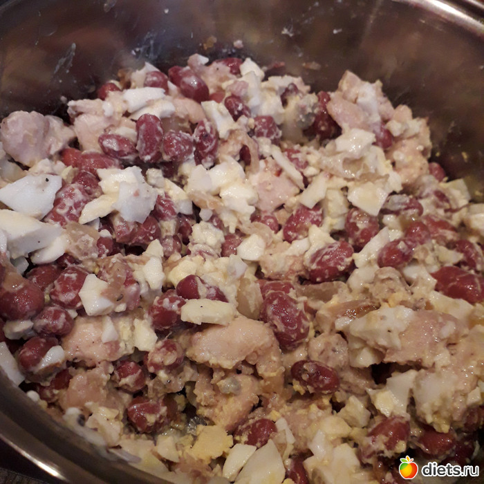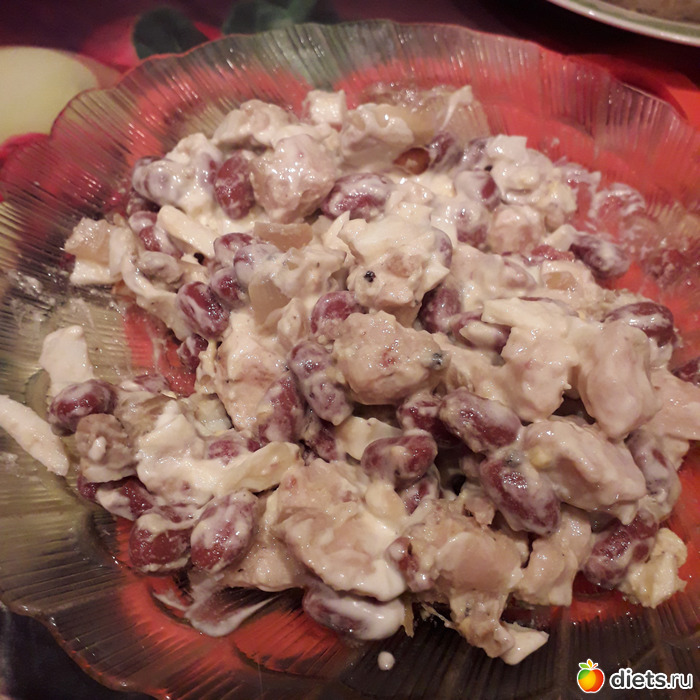 Спасибо за напоминашку, как раз в памяти всплыл забытый салат, который тетя моя делала - курица обжаренная (обязательно с приправой карри), морковка + лук припустить на масле до мягкости, соленые огурчики и фасоль из банки. Заправка - масло (обычно достаточно от овощей, но можно чуть добавить).
