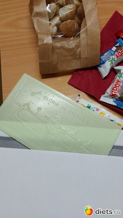 Еще вот что принесли - без понятия, как это на русском. Выдает священник в костеле. Выглядит как лист бумаги, на вкус безвкусный. По традиции эту плотку надо разделить с семьей, по кусочку каждый отламывает и передает следующему