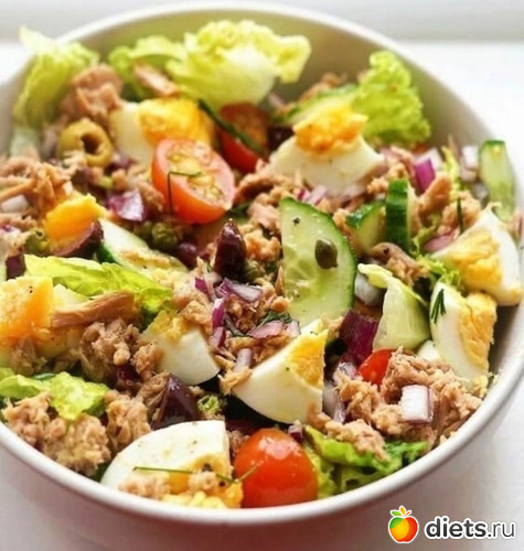 Diets.ru Простой белковый салатик готовится 10 минут.