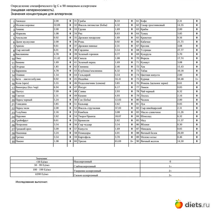 Вчера пришли результаты анализов на непереносимость продуктов. В общем, каких то пищевых аллергий у меня вроде как нет, чему я несказанно рада