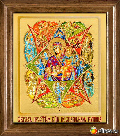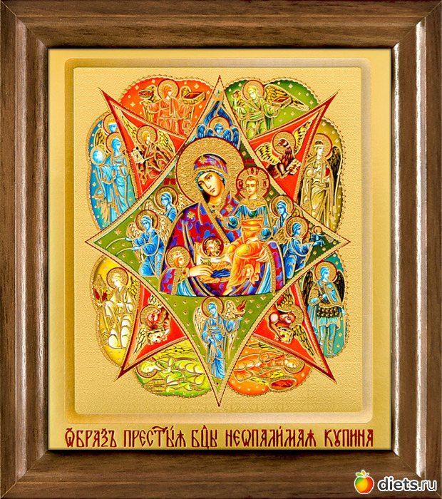 Восьмиконечная звезда присутствует также на иконе Божией Матери «Неопалимая купина».