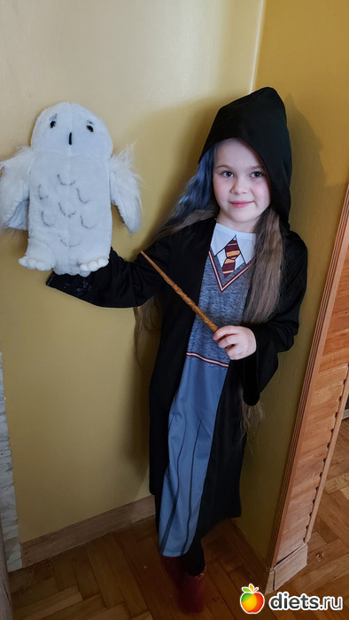 Костюм изначально она хотела Хедвиги (совы) - есть даже такой готовый в H&M