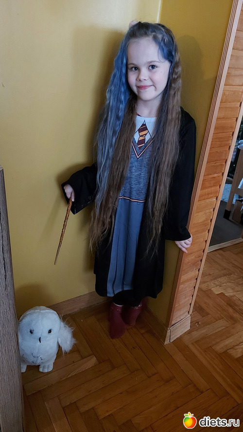 Дочка - вылитая Гермиона! Здорово, что разрешают в школе самовыражаться... у нас же как в армии, все строго... не дай бог с накрашенными ногтями придешь...