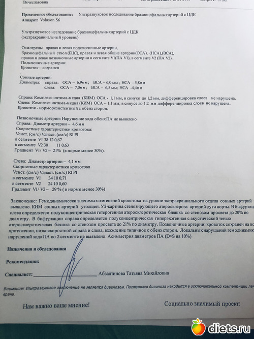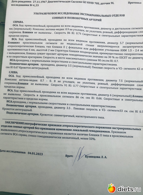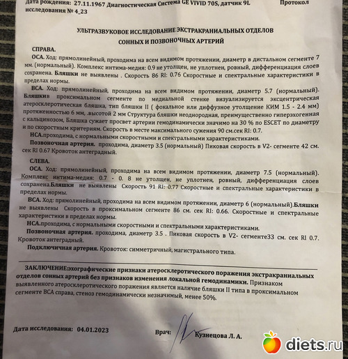 Добрый день, Томочка)Я вот как раз проходила диспансеризацию, но заодно и проверила сосуды шеи и головы.У кардиолога была , она сказала срочно пить статины.