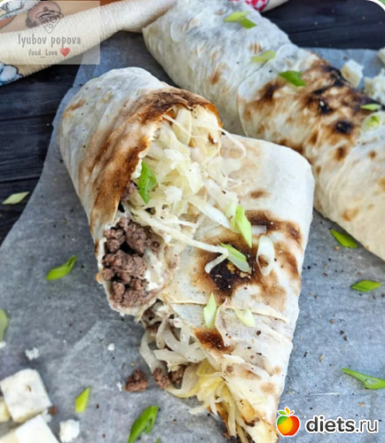 Diets.ru Ролл с говядиной, сыром и квашеной капустой.