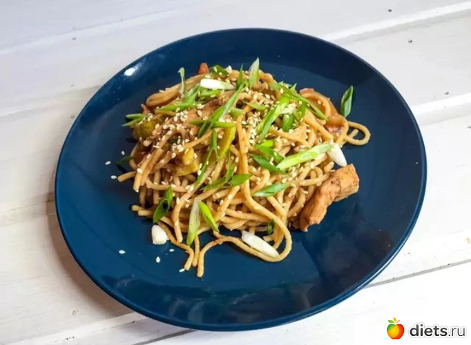 7. Добавляем спагетти, уменьшаем огонь почти до минимума, перемешиваем и готовим еще 3-4 минуты. На этом этапе соль регулируем с помощью соевого соуса.