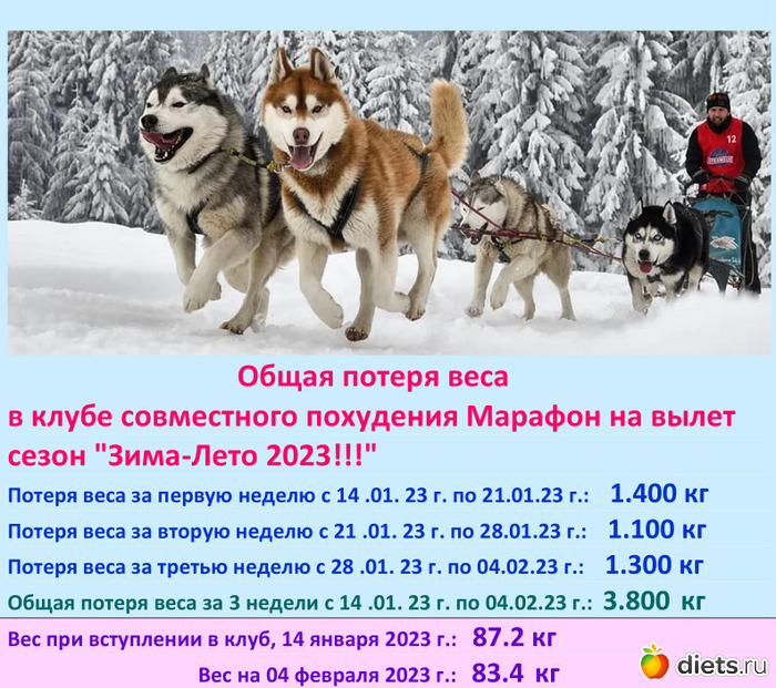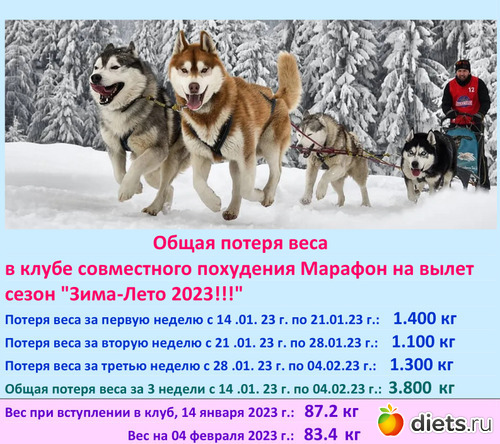 Снижение веса с 28 января 2023 года по 4 февраля 2023 года в клубе совместного похудения Марафон на вылет сезон "Зима-Лето 2023!!!"