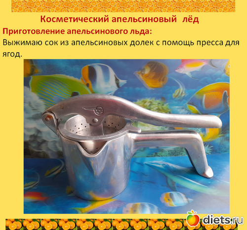 Решила для придания лицу свежего вида, сделать косметический апельсиновый лёд для лица.