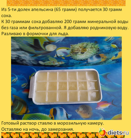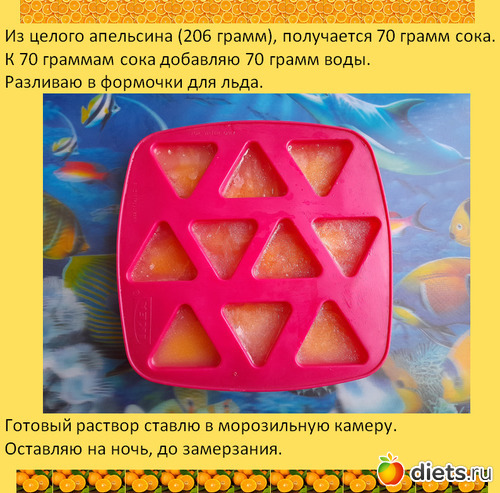 Концентрированный лёд, думаю можно использовать один два раза в неделю, так как концентрация апельсинового сока высокая.