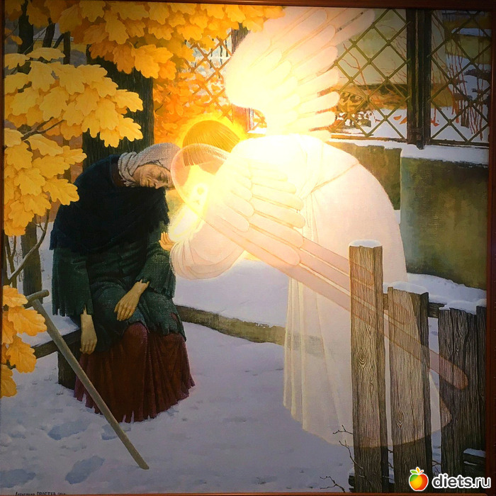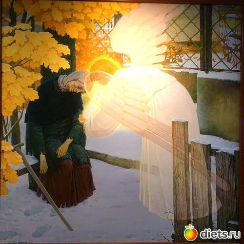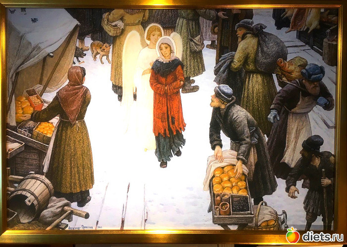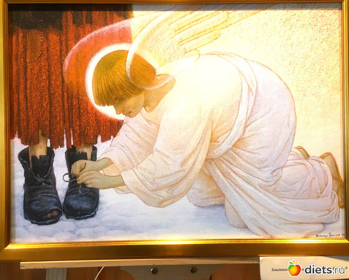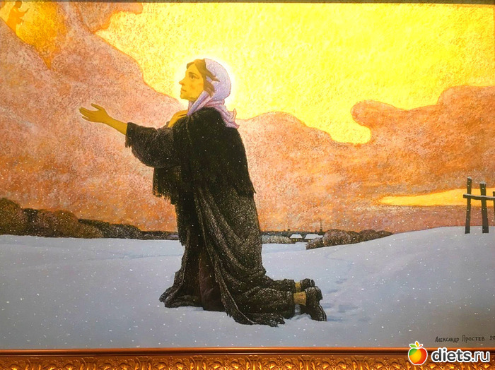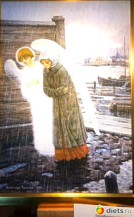 P. S. О жизни и истории воцерковления Александра Простева есть несколько интервью в свободном доступе в интернете. Там же есть фотографии других произведений художника, среди которых серии картин о Петре и Февронии, о Сергии Радонежском, об ангелах.