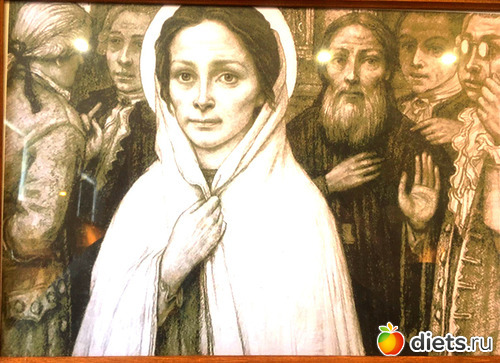 "Потрясенная внезапной смертью мужа, умершего без покаяния, 26-летняя вдова решила начать труднейший христианский подвиг – казаться безумною, дабы, принеся в жертву Богу самое ценное, что есть у человека – разум, умолить Создателя о помиловании внезапно скончавшегося супруга.