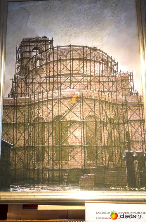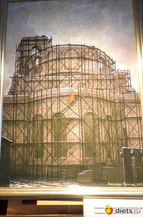 "На Васильевском острове Ксения помогала строить кладбищенский храм в честь Смоленской иконы Божией Матери" - по ночам носила наверх кирпичи, чтобы облегчить труд каменщикам: