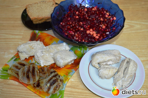 Рецепт:варёная свёкла, нут, фиолетовый лук (у нас был обычный), лимонный сок, оливковое масло(у нас ароматное, ну не любит муж оливковое), гранат. Вкусный салат, точно пойдёт в копилку.
