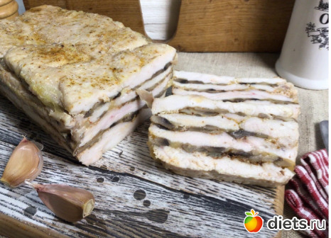 обязательно мясо посолить и посыпать сухим желатином. Ещё надо обмазать мясо соусом