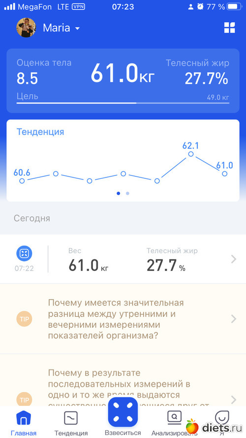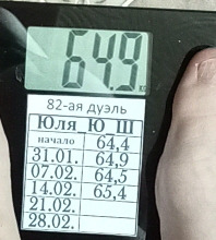 Всю неделю вес качает от 64,7 до 65.1. Три последних дня стоит 64.9