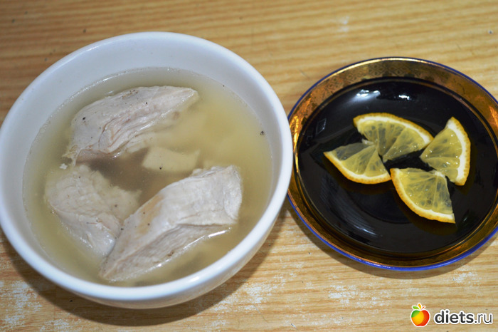 "Суп"- бульон из грудки и лимончик. В последнее время стала есть каждый день лимон
