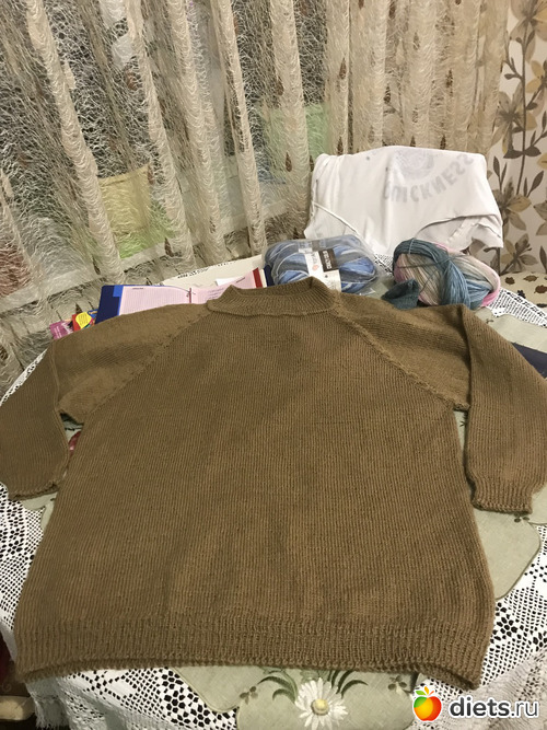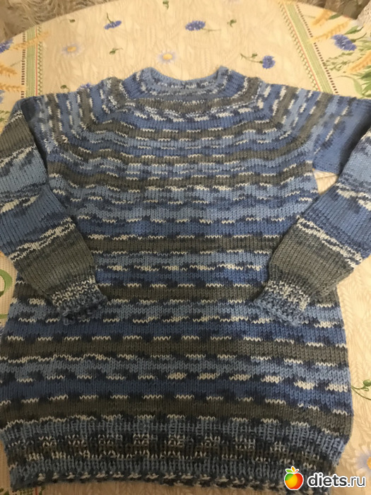 свитер мужу, вечно ворчит, что он обделенный, что я всем вяжу, а он голый и босый ходит )))))