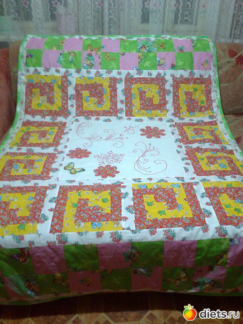 Сейчас попробую найти фото одного одеяла из лоскутов.