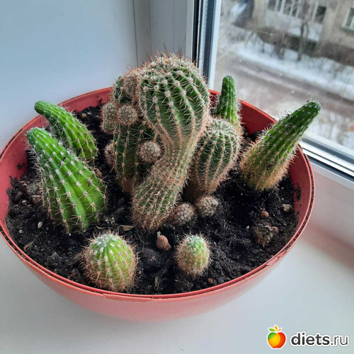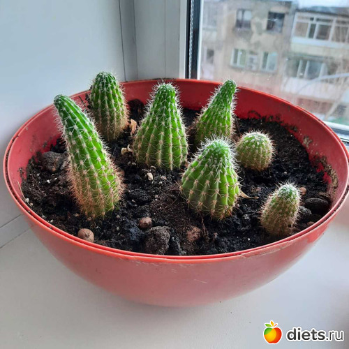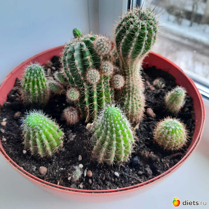 Я бы рядом повесила на время липучку от мух да и все дела. А кактусы хороши. У меня такой вот что в центре эхинопсис цветет каждый год. Дает два цветка. И ваш должен осилить, тем более, что после встряски и переселения