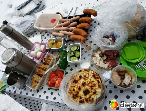 И стол готов! Чтобы не замёрзнуть - 2 термоса с горячим чаем.