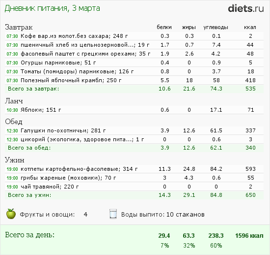 . Но я записывала в дневник питания и считала, чтобы видеть, где нужно исправлять. Буду учиться. Хочу чтобы еда, в нашей семье, было вкусной разнообразной и от неё не рос вес