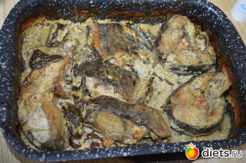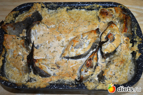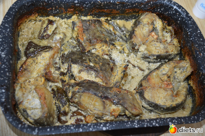 Налим, запечённый в сметане в духовке. (думала как раз опробую новую форму)
