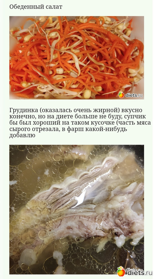 я сегодня с курогрудью и овощами, в обед в виде супа, вечером в виде куска мяса и салата- голодновато, поэтому перегладила все что можно в шкафу после работы