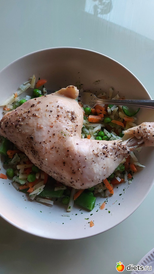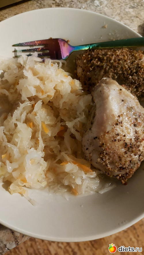 *2 куриных бедра на пару, квашеная капуста, ок 500 ккал