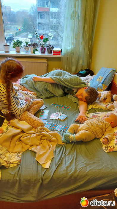*аналогично 5й и 6й сны, с дочкой, либо с сыном домашка, либо все вместе играем в настольные игры