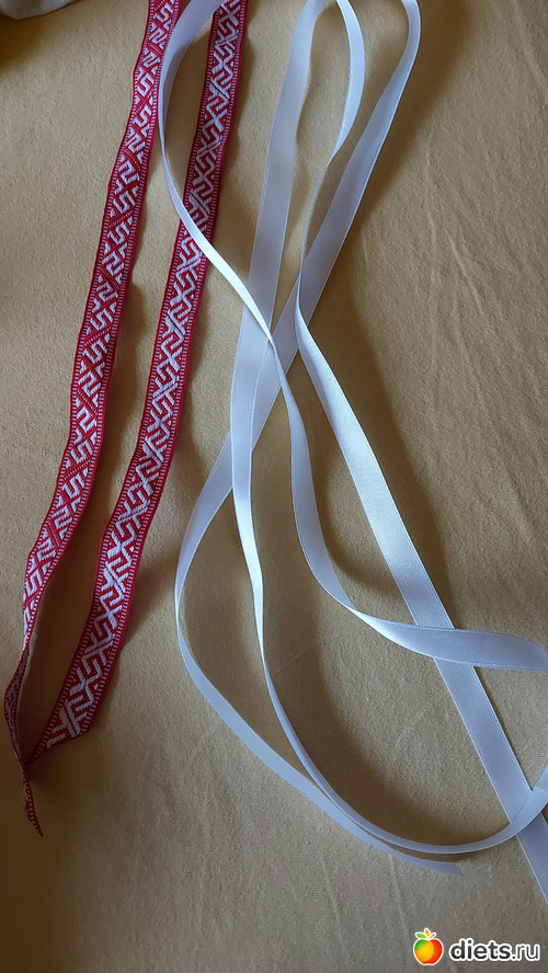Я так и сяк ломала голову, как 3 ленты распределить на две косы, спрашивала даже помощь зала на местном мамском форуме, предполагая, что уж литовки должны знать, как выглядит их национальный костюм, но и там только руками развели