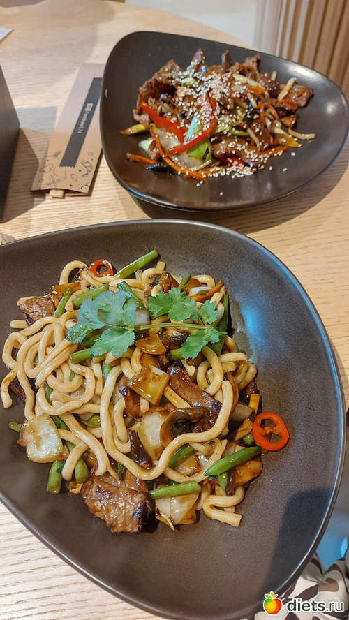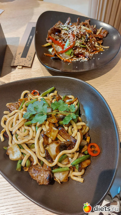 У меня - удон с говядиной. Не очень...удон - вкусный, говядина - нет