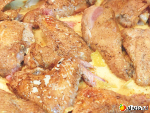 Получившимся соусом заливаете курицу и ставите в разогретую до 200С.
