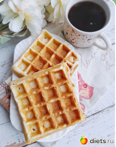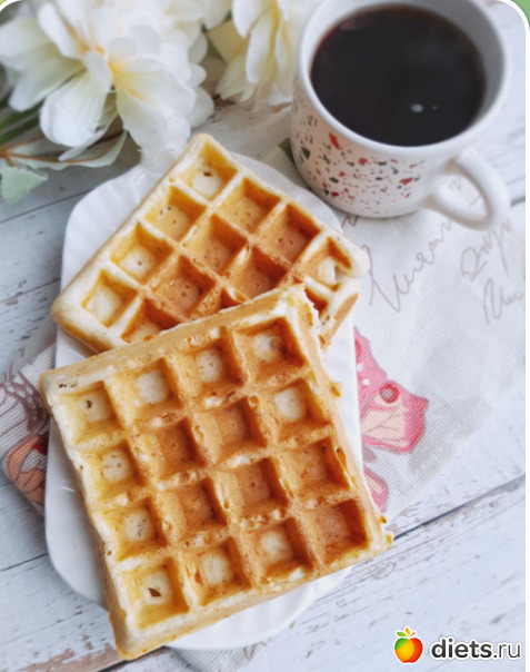Перед первой порцией смазываем маслом вафельницу. Выкладываем ложкой тесто и обжариваем до аппетитной золотистой корочки. Приятного аппетита.