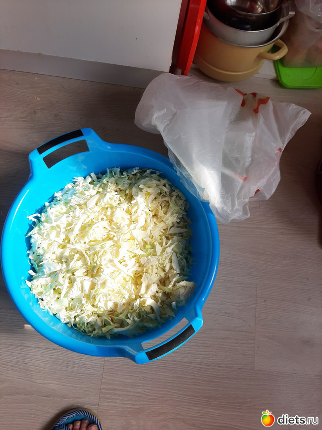 В тазике – солёная, в банках – квашеная. И ещё полмешка. Но нужно доперебрать сегодня, в субботу уже руки не двигались и в глазах одна капуста была.