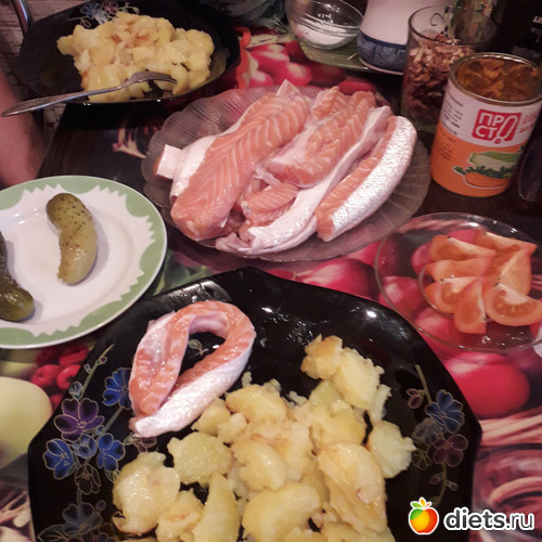 -Картошка, брюшки семги соленые