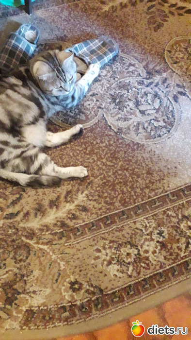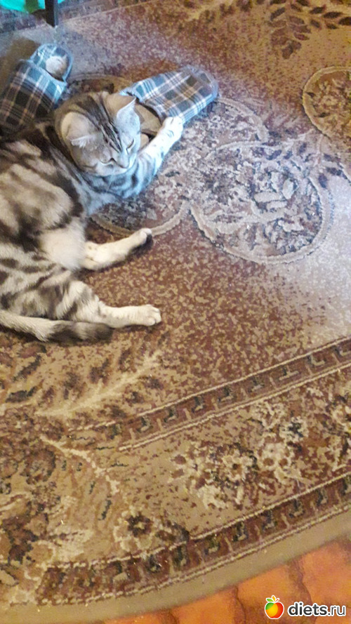 Монечка так трогательно тапки обнимает...скучает котеечка