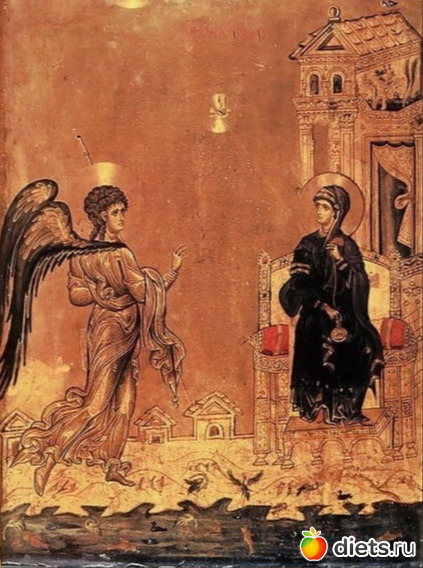 Благовещение празднуется ровно за 9 месяцев до Рождества Христова. По учению Церкви, человек появляется на свет в момент зачатия в утробе матери, а не в момент его рождения.