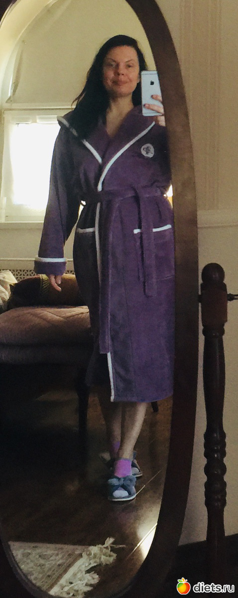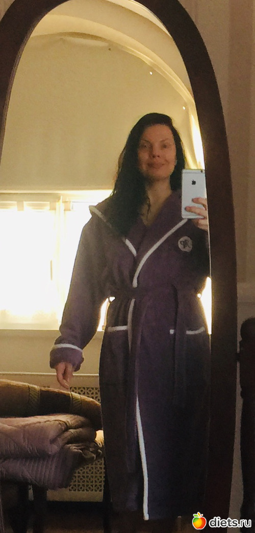 Ещё побаловала себя покупкой нового банного халата -очинно довольна! Мягкий пушистый объемный и специально цвет вот такой взяла -у меня такого же цвета есть покрывало наволочки и полотенца -воющем целый комплект. Тапочками тоже себя новыми порадовала.