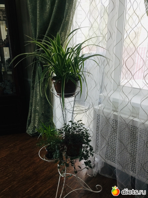 А это новые цветочки на подставке и новая тюль. (Или правильно говорить - новый тюль?)