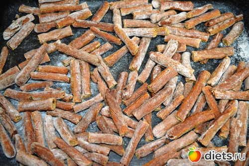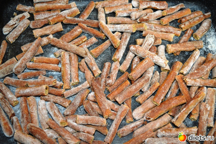 Думаю, что я сама не сделаю? Посмотрела, оказывается, многие делают своим питомцам вкусняшки сами. Правда купить то, из чего делать проблематично. Вымя, говяжье лёгкое, трахея - это не так просто купить, если привозят, то разбирают в течении часа. Единственное, что можно купить - рубец. Я приготовила печенье из говяжей печени, моркови, кабачка, чеснока, лука, овсяных хлопьев и муки. Получилось очень много, хватит надолго. Изначально предполагалось, что для щенка, но кот тоже ест с удовольствием. Сделала в виде палочек (сильнее подсушила) для зубов, и маленькие для дрессировки. Когда смотрела рецепты, то многие говорили, что сами едят. Я тоже попробовала - вкусно.