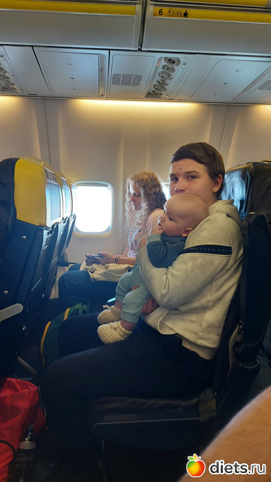 Малышок поспал в зале оджидания раз, потом дважды в полете. Вообще никаких проблем с ним. Вот дочка довела всех до белого каления бесконечными вопросами, а что, да как, да почему