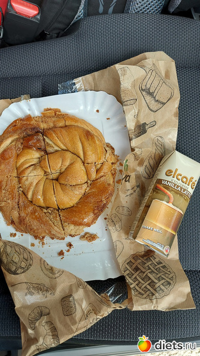 На обед у нас были булки: с халуми, с фетой, еще там с чем-то... и вот такой шикарный пирог вроде как с орехами и медом