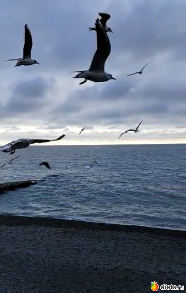 Море в такую погоду печальное и таинственное. И вечно голодные, жирненькие чайки, громко и нагло требуют еды.