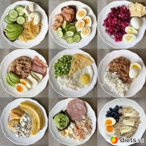 Яйцо, творог в зернах, каша пшеничная
