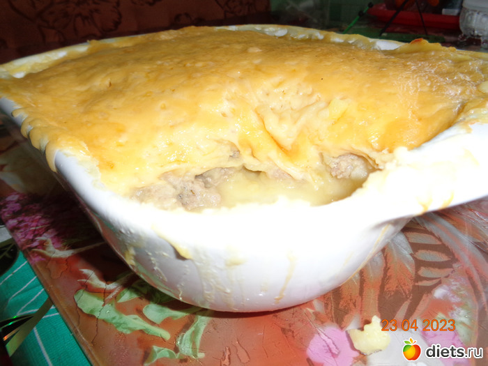 3. Форму смазываем маслом и выкладываем слоями: пюре, фарш. Выкладывать лучше тонкими слоями, так фарш быстрее приготовится. Последним слоем должна оказаться картошка.