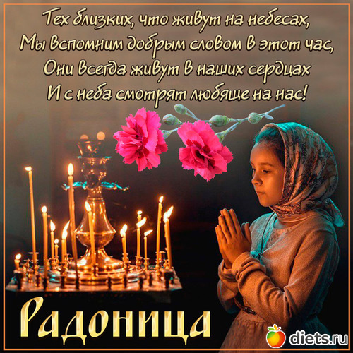 Радоница – день особого всецерковного поминовения усопших. Происходит от слова радость – т.к. всегда выпадает на празднование Пасхи (которое продолжается 40 дней).