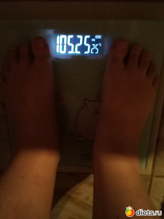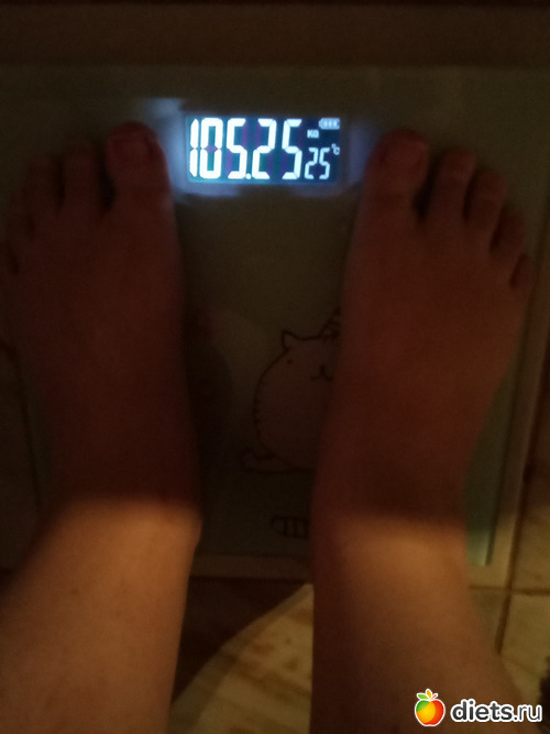 Что хочу сказать, сегодня я проснулась в 3 утра, выпила на тощак 500 мл горячей воды, сходила в уборную и взвесилась, да вес опять вырос на 550 г и вешу теперь я 105.250 кг!