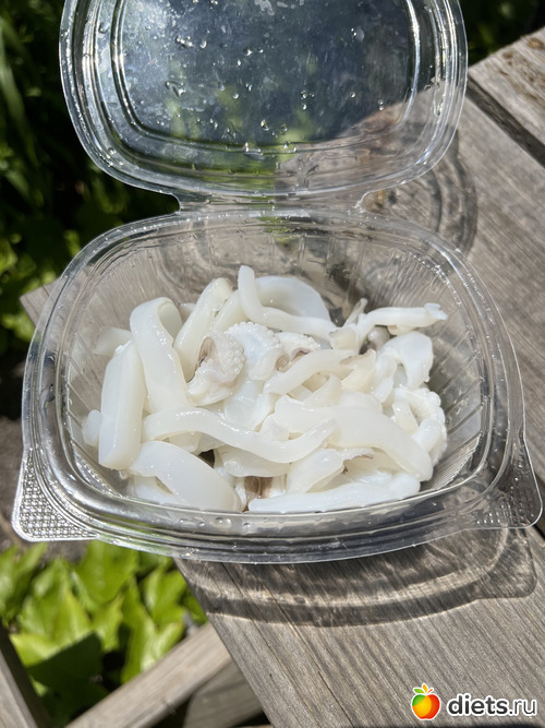 Cырой кальмар свежий очень вкусный, попробовала впервые, ем каждый день. Много не съешь, 100-150 грамм :/)