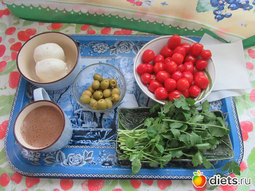 Мой любимый средиземноморский завтрак (который могу есть и на обед, и на ужин, вообще так могу питаться постоянно): моцарелла+помидоры черри зимой/помидоры летом+огурцы/сладкий перец/руккола/базилик+оливки/маслины+кофе. Увы, сейчас, если в хорошем качестве, это стоит жутко много.