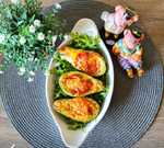 Запекаем при температуре 180 градусов 15 минут (или до готовности яйца, я запекала в аэрогриле, в духовке может быть немного дольше).